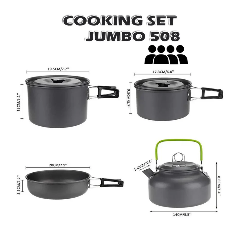 – 2 Boiling pans Material: Anodized Aluminum Diameter x height: 12.3x 19cm and 9 x 16CM. Equipped with a lid and handle coated with heat-resistant plastic
