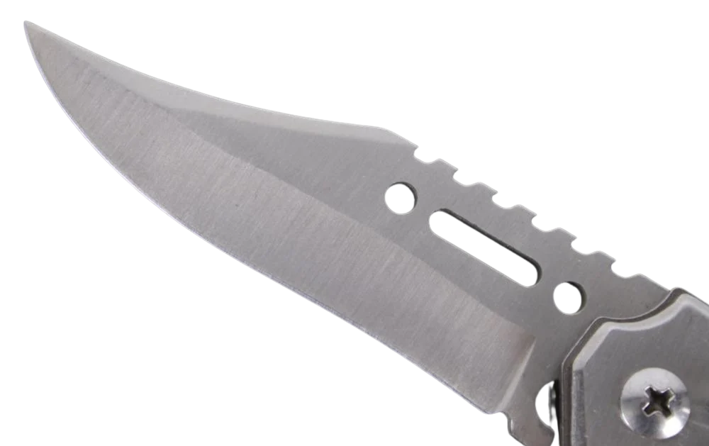stainless steel clip point switchblade knife and flashlight