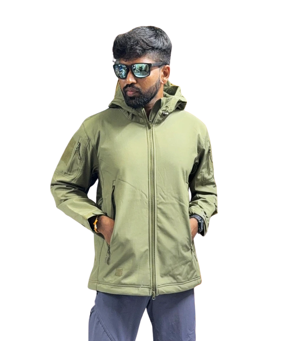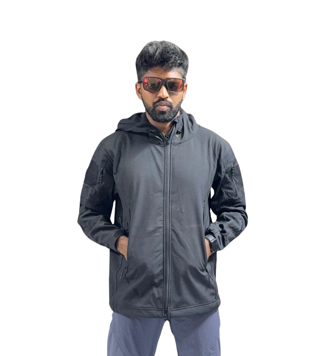 Our best selling cold weather jacket with a sleek design featuring a concealed tactical hood and two hidden pockets. Engineered for harsh conditions, offering breathability, water resistance, and thermal insulation.